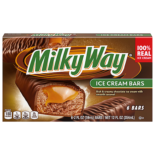 Get ready to enjoy an out of this world ice cream treat with our MILKY WAY Ice Cream Bars! Made with creamy chocolate ice cream and smooth caramel, covered in a delicious milk chocolate shell, say hello to your new favorite frozen novelty! You'll feel like a star when you share MILKY WAY Ice Cream Bars at your next movie night! MILKY WAY Ice Cream Bars are perfect for birthday parties and celebrations. Move over birthday cake, you've got competition! With 6 individually wrapped ice cream bars, you'll have enough to stock your freezer with this scrumptious frozen treat. As you spend your summer nights stargazing with your besties, be sure to pass around these individually wrapped MILKY WAY Ice Cream Bars for a blissful bite!