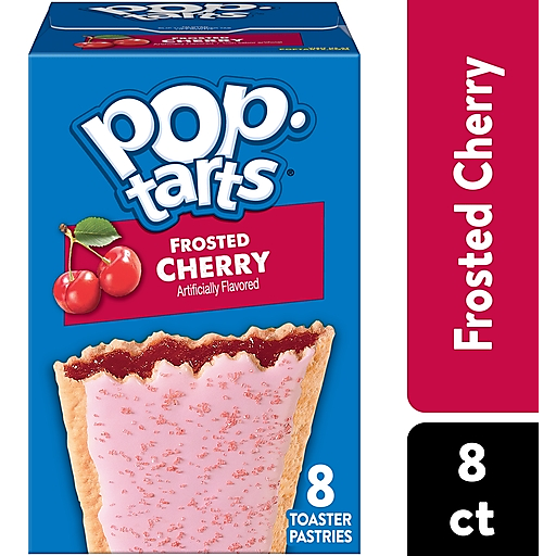 Pop-Tarts toaster pastries are the perfect sweet treat at breakfast, for lunch snack time, or dessert. Featuring a sweet cherry-flavored filling and crunchy sprinkles on a soft pastry crust, this ready to eat treat is perfect for snack time for kids and adults on the go. Pack Pop-Tarts Frosted Cherry in lunchboxes or backpacks when it's time for school snacking, or stock the office pantry with this individually wrapped grab and go adult snack time choice. Pop them in the toaster and pair with milk, create your own ice cream sandwiches, or incorporate into your favorite dessert recipe for a sweet treat. These irresistible snack time options for kids and adults provide a good source of three B vitamins. Stock your pantry with these shelf stable snack alternatives and enjoy ready to eat treats anytime. A flavor for everyone, including beloved classics like Frosted Strawberry or Frosted Blueberry, or our more indulgent flavors, Frosted Cookies and Creme or Frosted Chocolate Fudge.