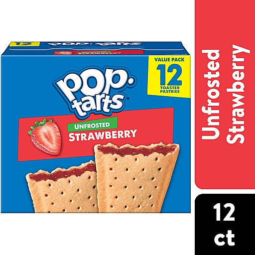 Pop-Tarts toaster pastries are the perfect sweet treat at breakfast, for lunch snack time, or dessert. Featuring a sweet strawberry-flavored filling in a soft pastry crust, this ready to eat treat is perfect for snack time for kids and adults on the go. Pack Pop-Tarts Unfrosted Strawberry in lunchboxes or backpacks when it's time for school snacking, or stock the office pantry with this individually wrapped grab and go adult snack time choice. Pop them in the toaster and pair with milk, create your own ice cream sandwiches, or incorporate into your favorite dessert recipe for a sweet treat. These irresistible snack time options for kids and adults provide a good source of three B vitamins. Stock your pantry with these shelf stable snack alternatives and enjoy ready to eat treats anytime. A flavor for everyone, including beloved classics like Frosted Strawberry or Frosted Cherry, or our more indulgent flavors, Frosted Cookies and Creme or Frosted Chocolate Fudge.