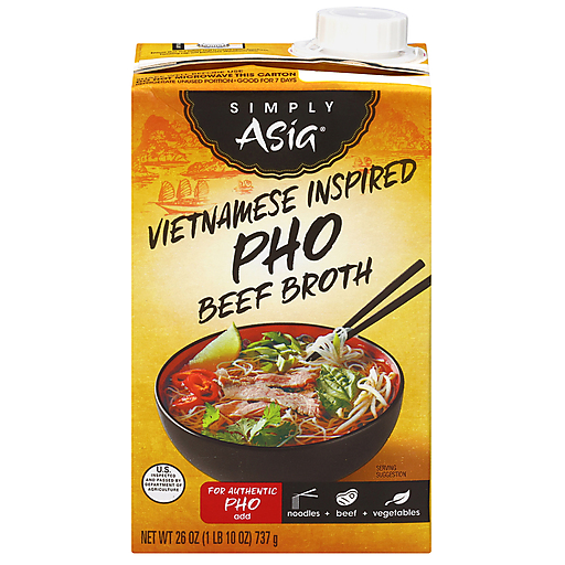 This flavorful beef broth spiced with cinnamon, star anise and ginger makes it easy for you to cook Vietnamese-style pho at home. Use it to sauté vegetables or as a base for soups and stews. This Simply Asia Vietnamese Inspired Pho Beef Broth is in a Cardboard that is 26 fluid ounces. Store this shelf-stable item at an ambient temperature